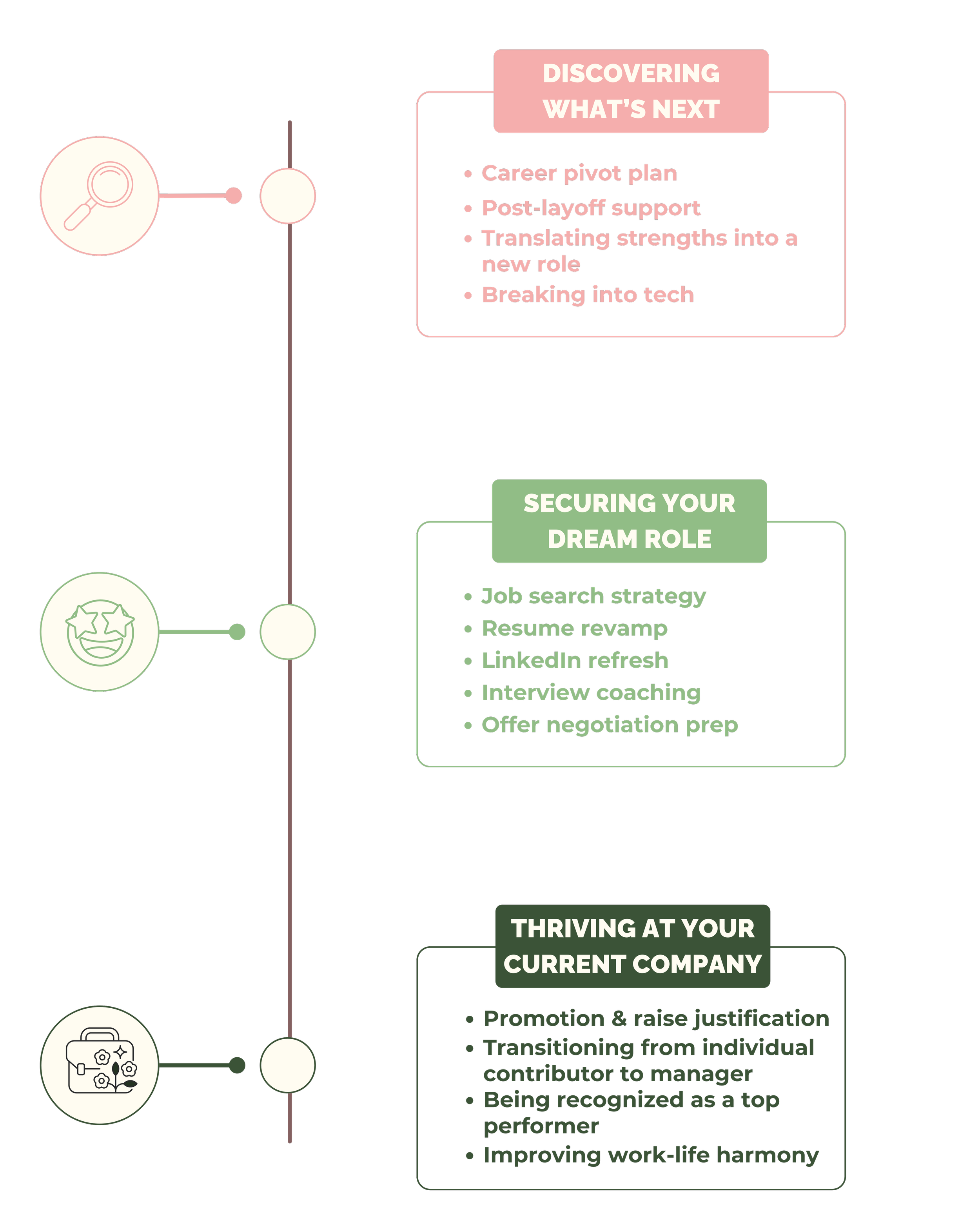 Personalized career coaching to help you discover, secure, and thrive in a career you love